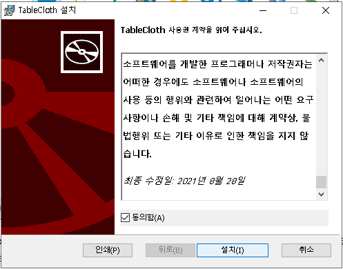 식탁보를 사용 중 발생하는 개인, 기업, 기관의 금전손실, 세금신고 누락 등을 비롯한 어떠한 장애나 손해에 대해서는 사용자 본인에게 책임이 있습니다. 중요한 작업의 경우 반드시 실제 PC 환경에서 사용해야 합니다.