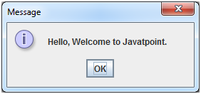 JOptionPane.showMessageDialog(f,"Hello, Welcome to Javatpoint.");