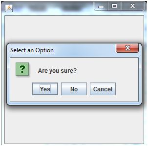 int a=JOptionPane.showConfirmDialog(f,"Are you sure?");