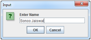 String name=JOptionPane.showInputDialog(f,"Enter Name");