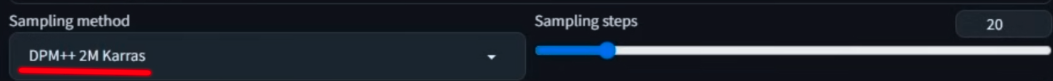 버전 업데이트가 진행되면서 Karras가 안보일 수 있다, 정상적인 경우 아래와 같이 Sampliing method에 표시된다.