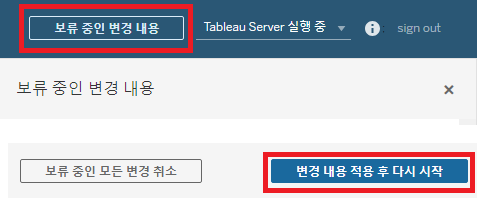 이후 재설정 버튼을 누르고, 우측 상단의 "보류 중인 변경 내용" -> "변경 내용 적용 후 다시 시작"을 통해 서버를 다시 시작해준다.