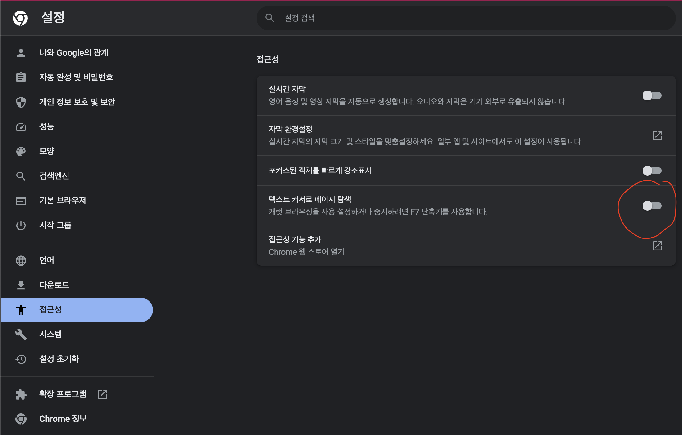 설정을 끈 후 페이지를 새로고침하면 해결된다.