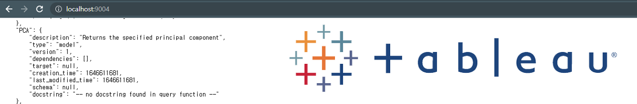 위의 순서대로 명령어를 실행하면 localhost:9004에 기본적으로 tabpy가 설치되어 있을 것이다.