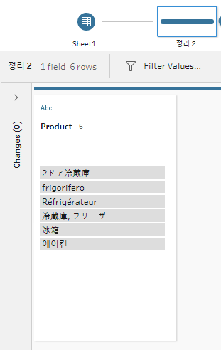 3-1) 사용한 데이터는 .xlsx이고 아래처럼 각기다른 언어로 이루어진 [Prodcut] 컬럼이 있다고 하자.