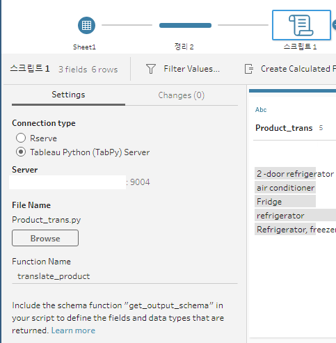 2) Prep에서 Tabpy와 연결이 되어 있어야 한다.